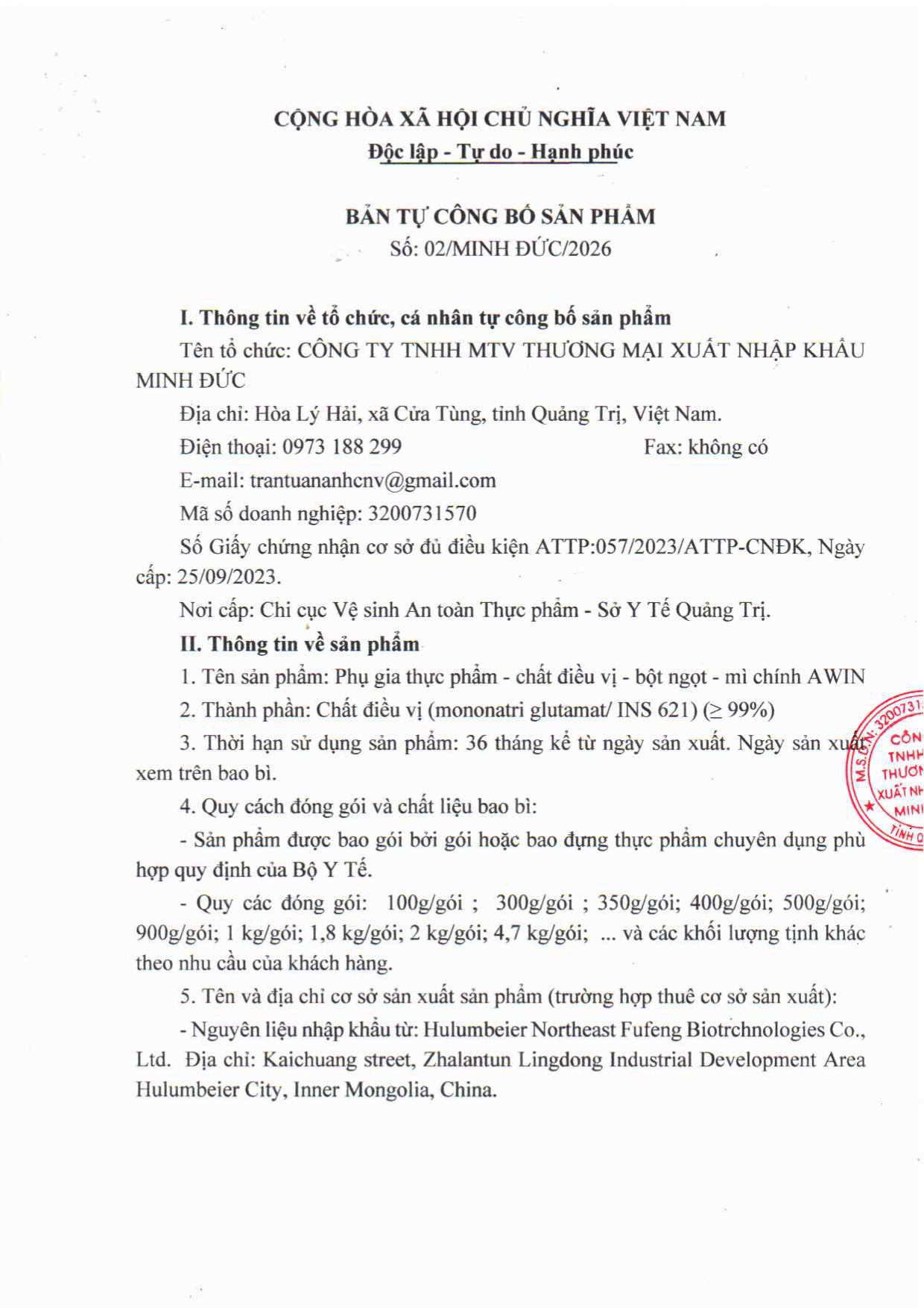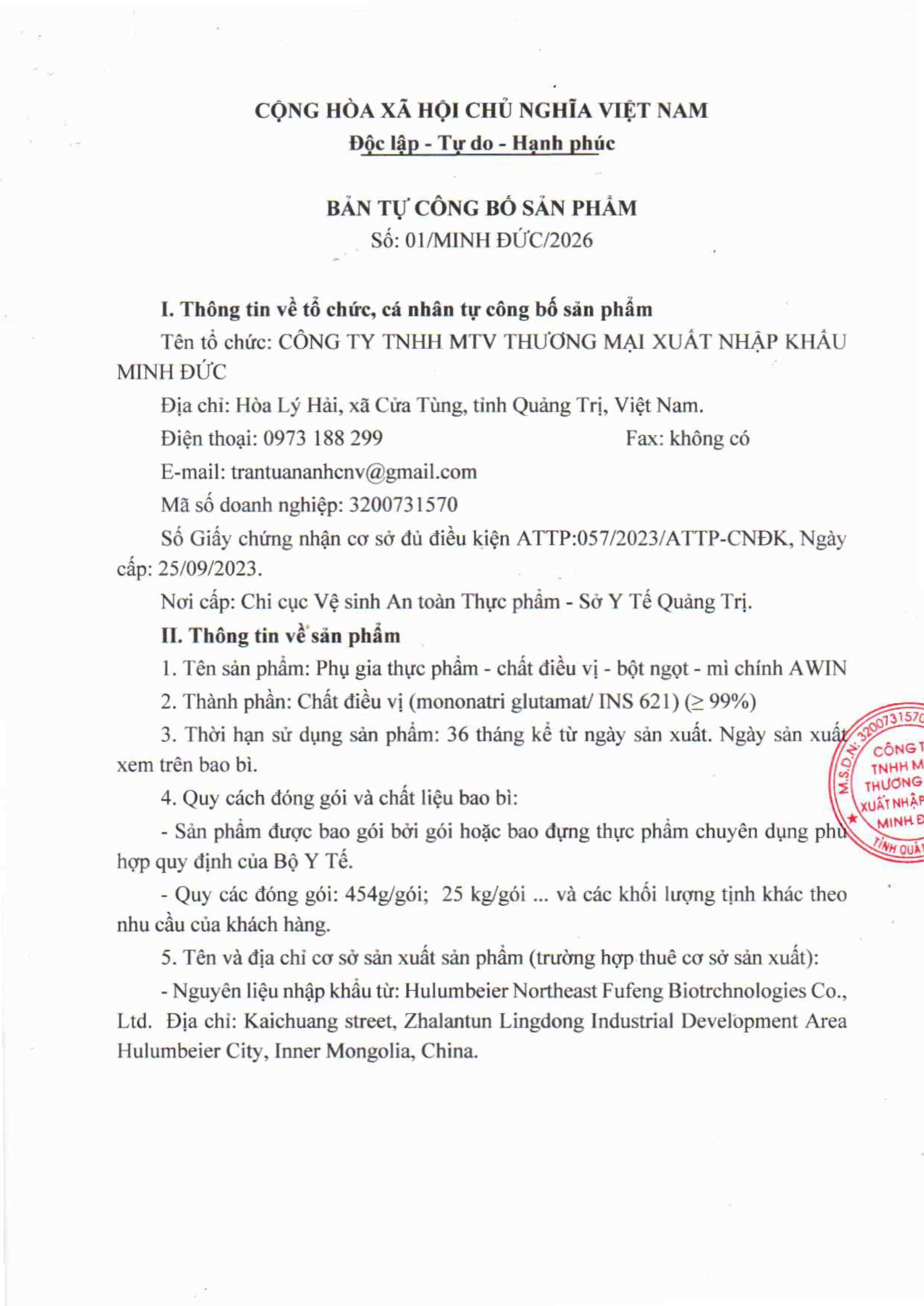 “Mì chính hay còn có tên gọi khác là bột ngọt là một chất điều vị dùng trong để nêm nếm các món ăn từ thịt, cá, hải sản, canh, súp,… và dùng trong hầu hết các công thức chế biến món ăn của người Việt Nam.”