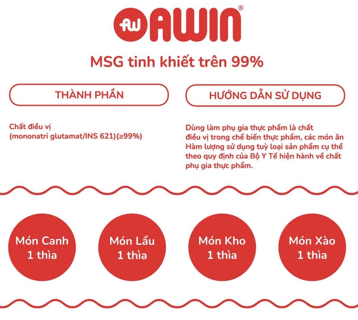 Phụ gia thực phẩm bột ngọt – mì chính Awin được sản xuất bằng nguyên liệu hoàn toàn từ thiên nhiên và tốt cho sức khoẻ.